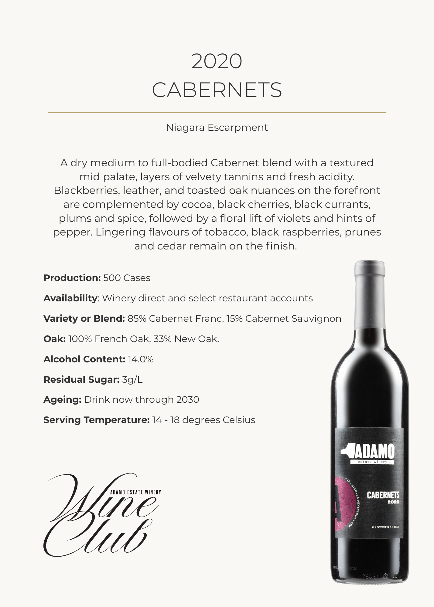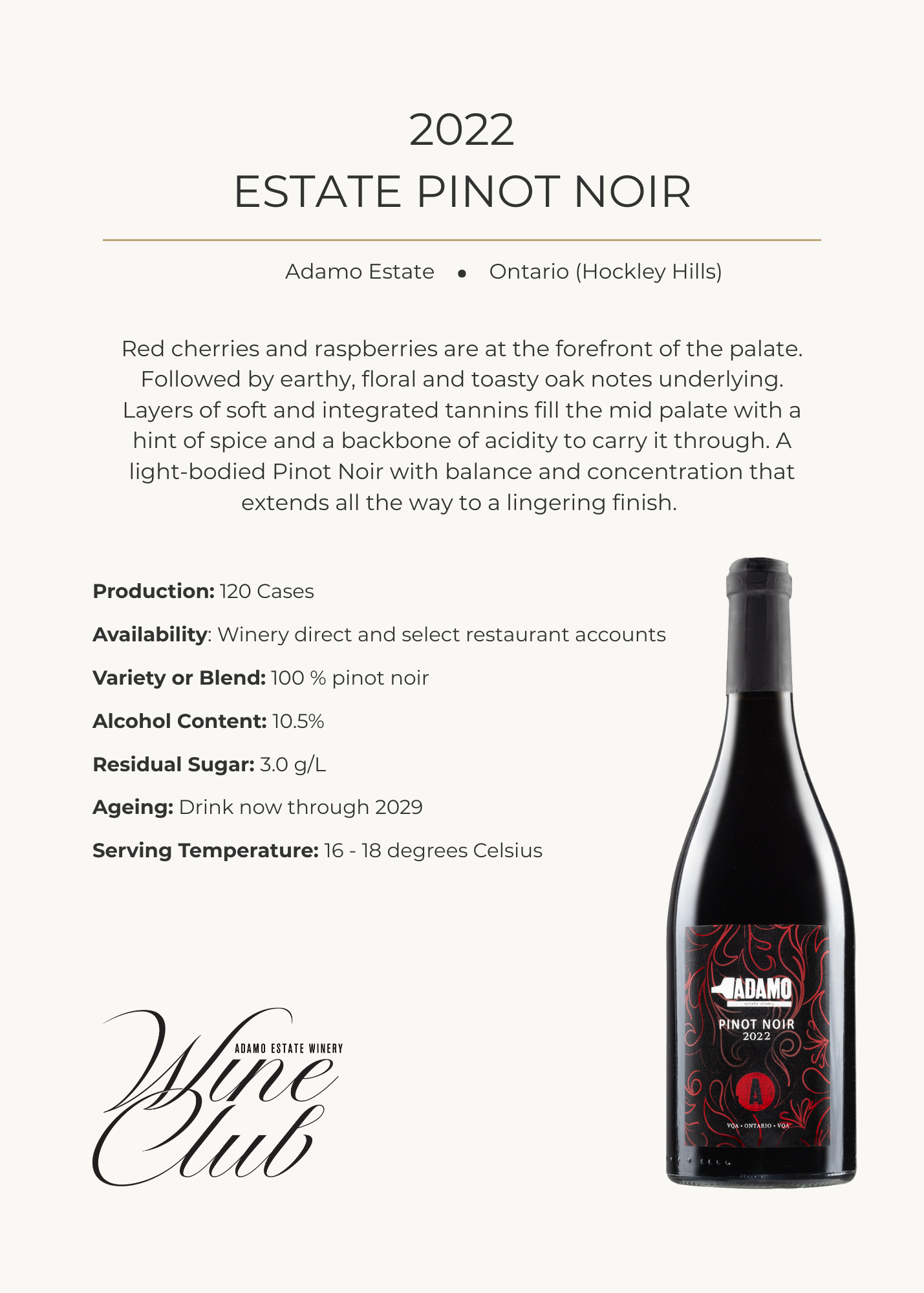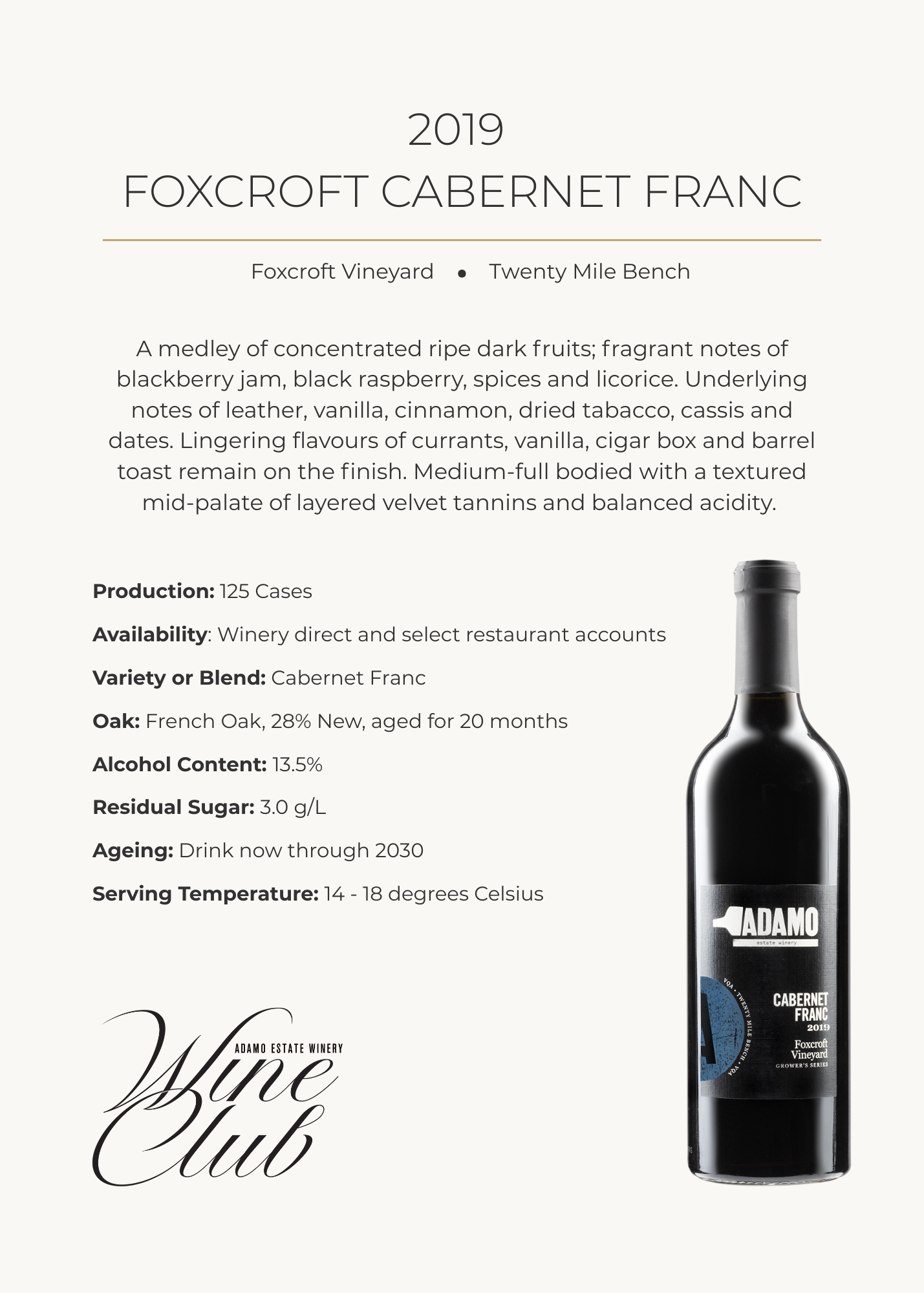 DISCOVER WHAT’S IN YOUR BOX W i n e C l u b T a s t i n g N o t e s 2022 Estate Pinot Noir2019 Foxcroft Cabernet Franc2021 Barrel Select Chardonnay2020 Gamay Noir2023 Estate Riesling2020 Cabernets