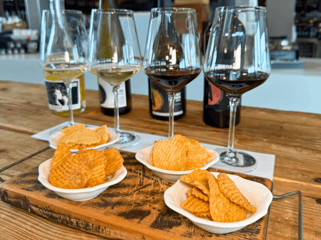 Designed for guests who prefer savoury over sweet, this experience features four wines: Frizzante, Riesling, Pinot Noir, and Cabernet Sauvignon, thoughtfully paired with gourmet chips.